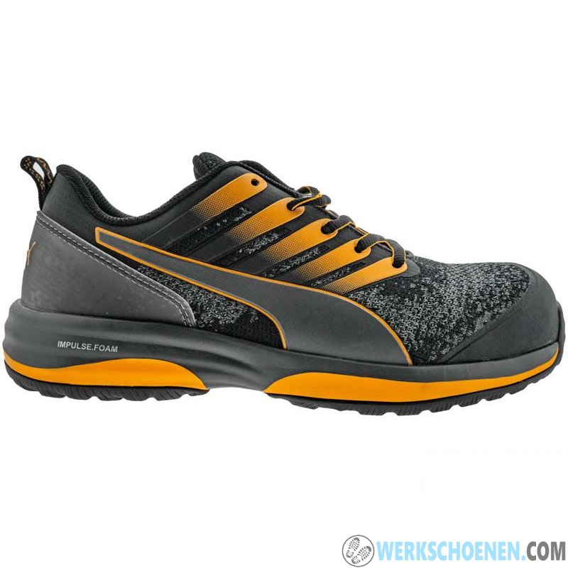Puma Charge Orange Low SP1 is een sportieve werkschoen en zijn gemaakt om veel te lopen. De veters zijn zwart met oranje. De schoenen zijn metaalvrij en verkijgbaar in de maten 40 tot ten met 47.